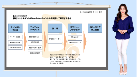 動画の背景となる壁紙は、いくつかのテイストから選んでいただき、具体的なビジュアルはその都度設定します。テロップや画像を上に載せても見やすいよう、薄い色になっています。ここに掲載しているのはひとつの例です。