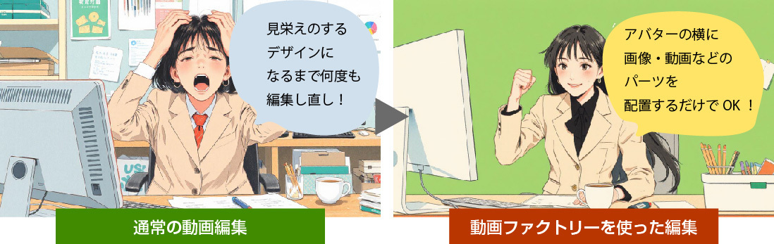 取扱説明動画などの動画編集では、映像だけでセリフがない部分があり、アバターのセリフと合わせる必要があります。